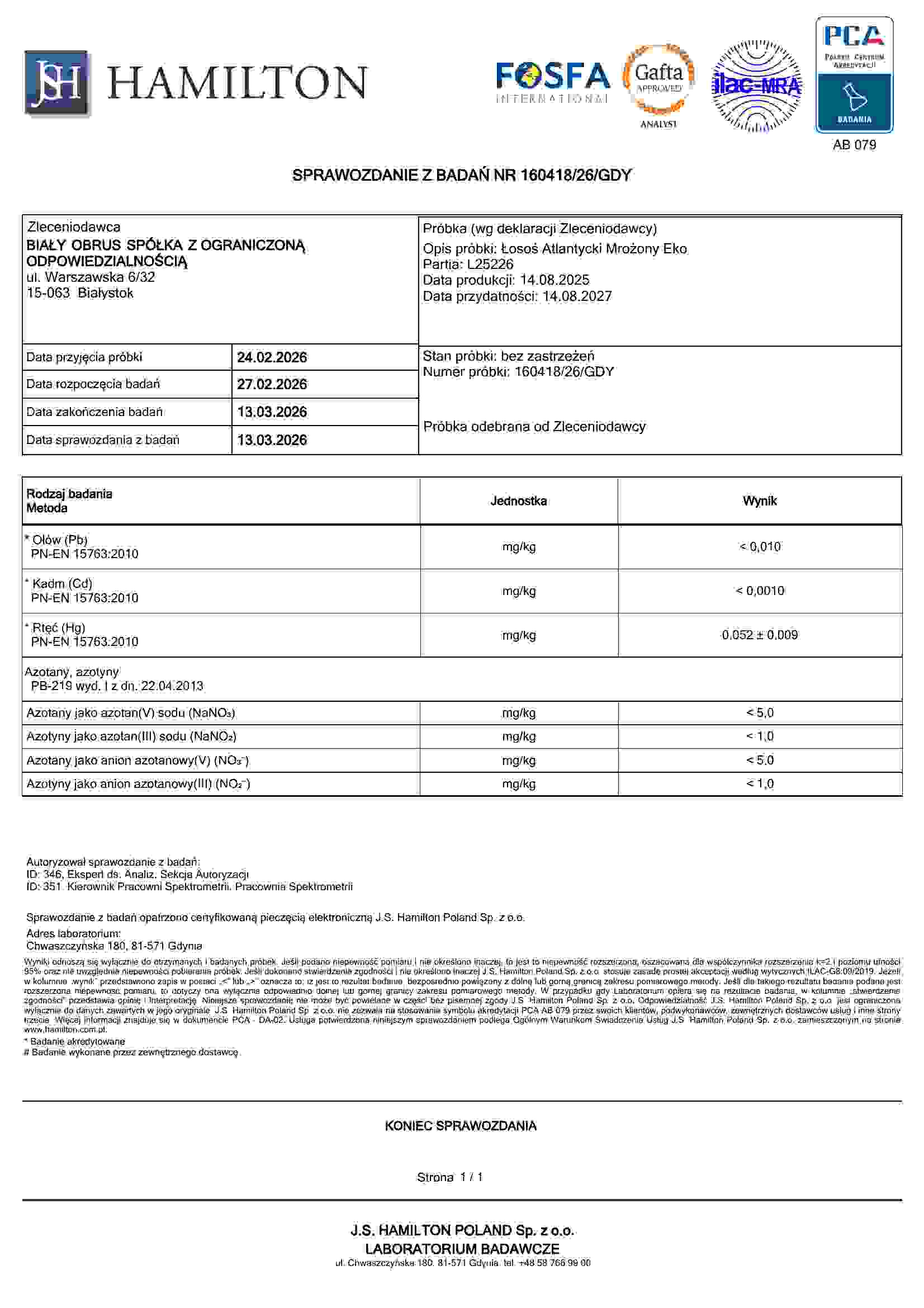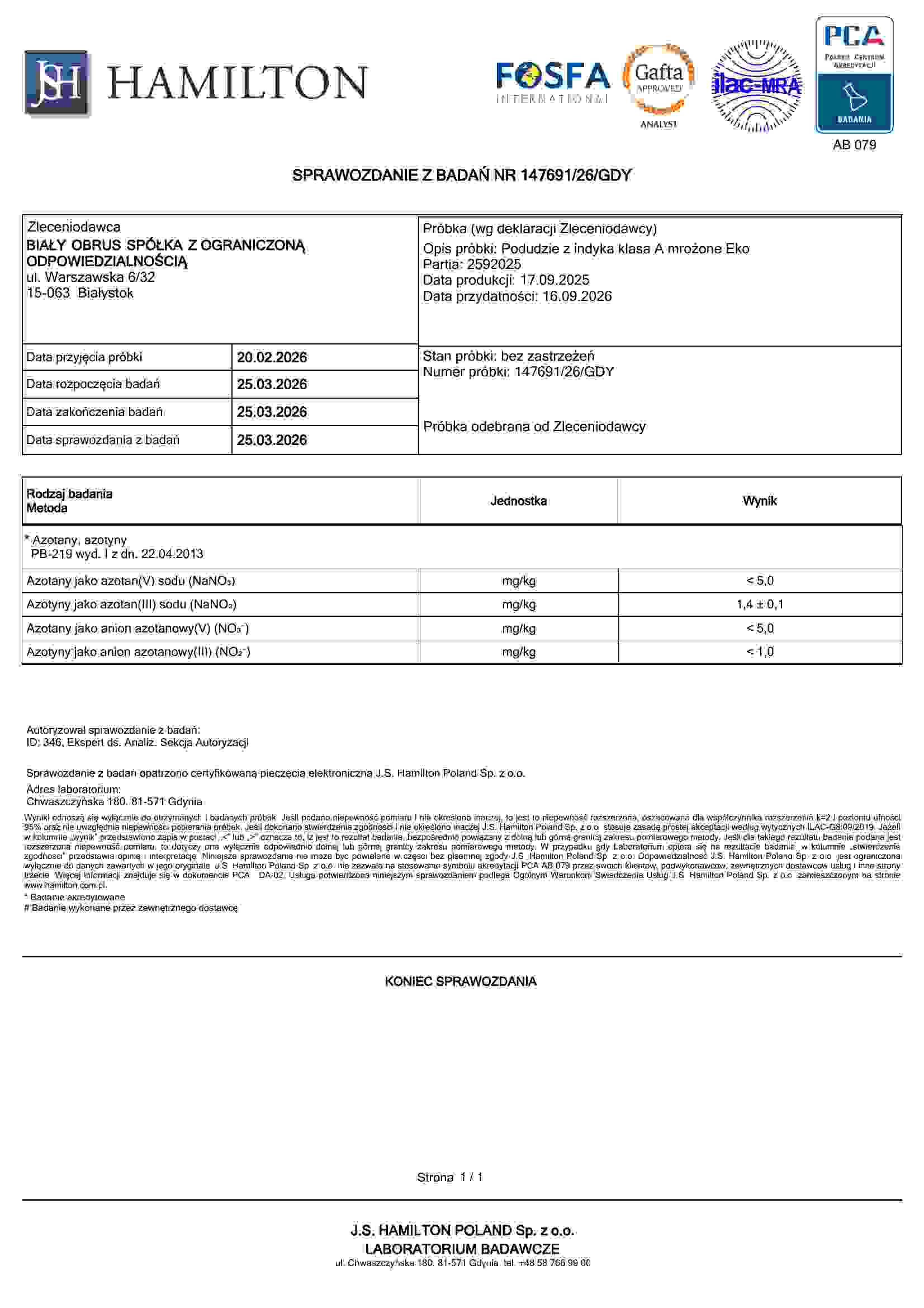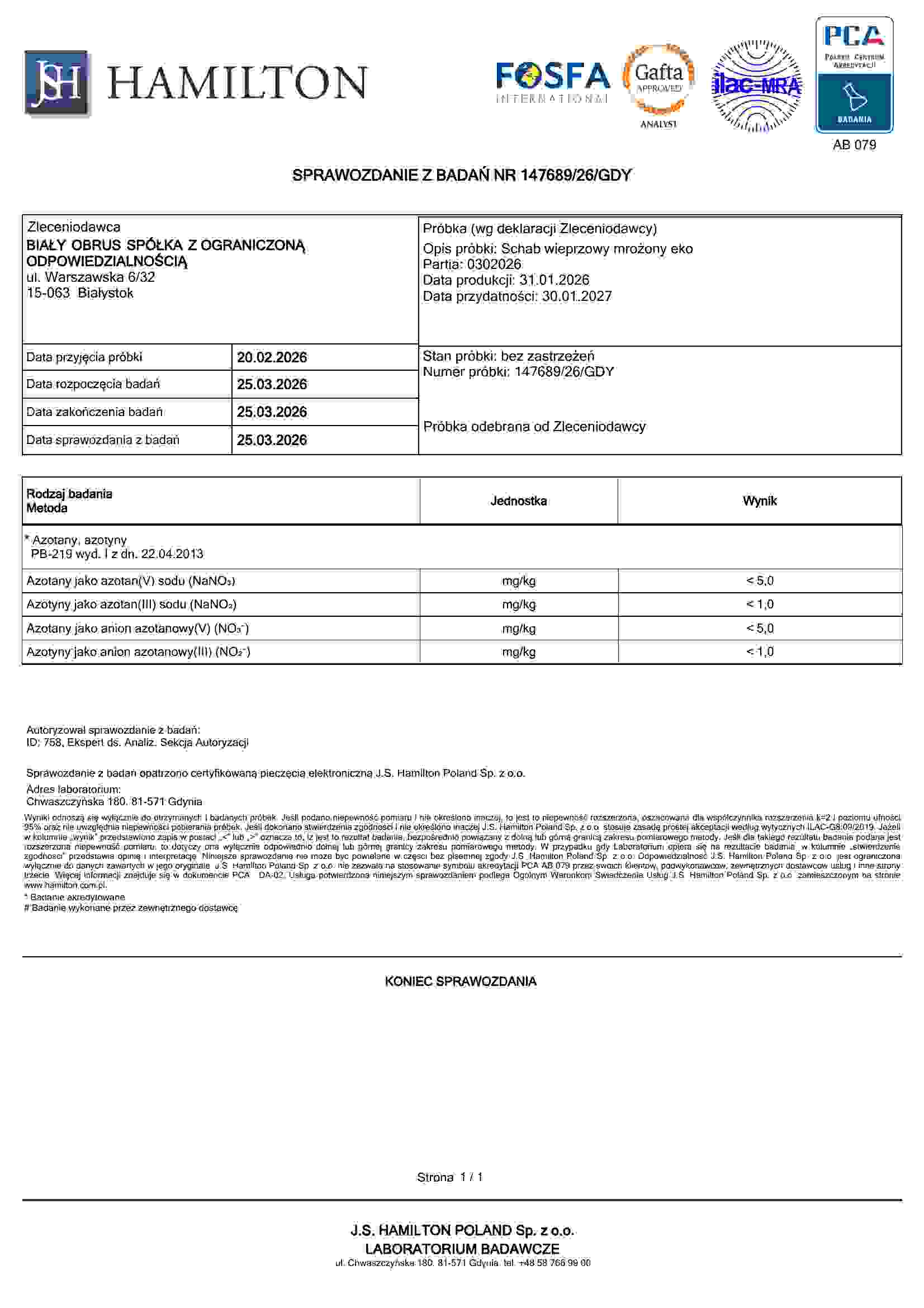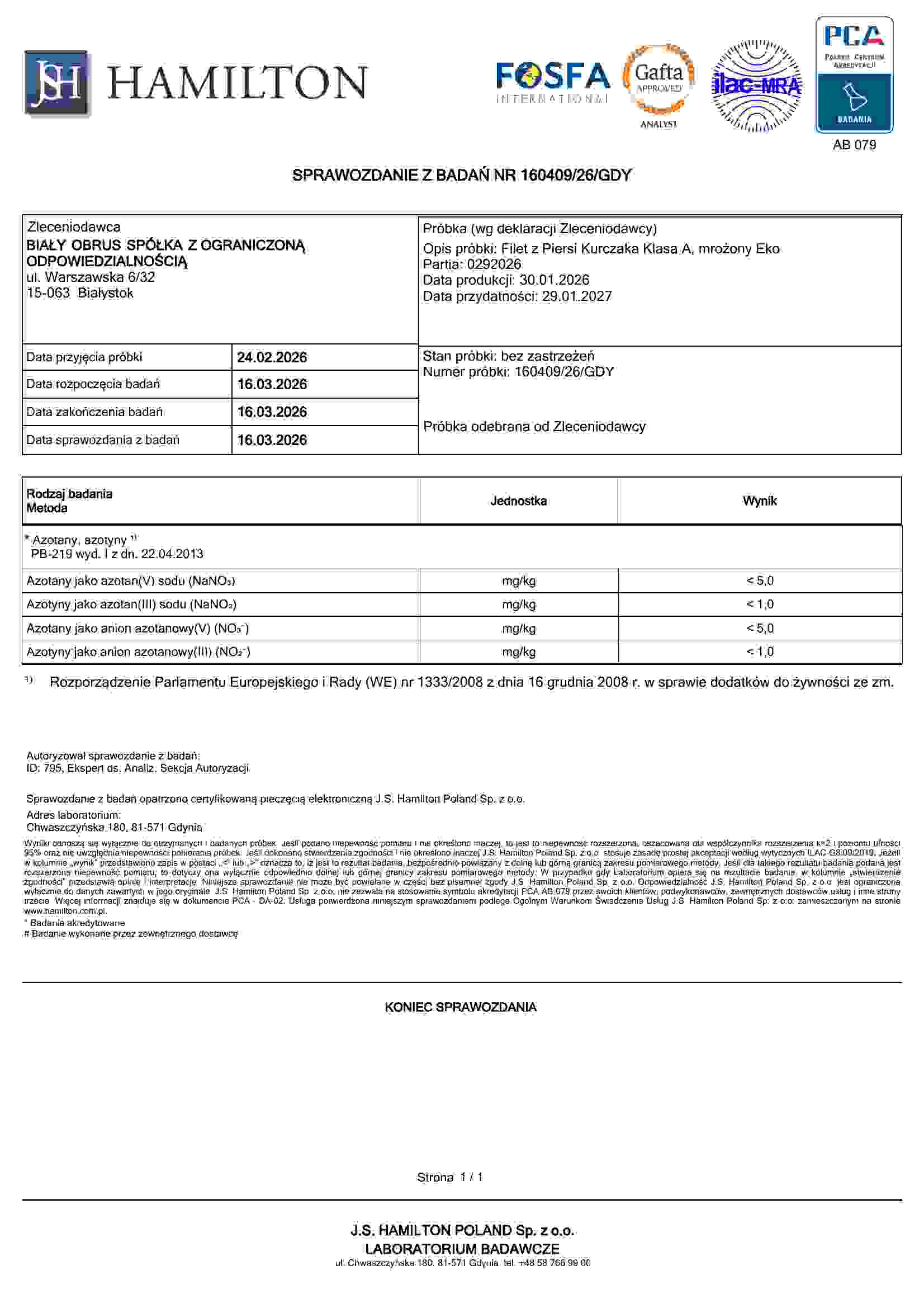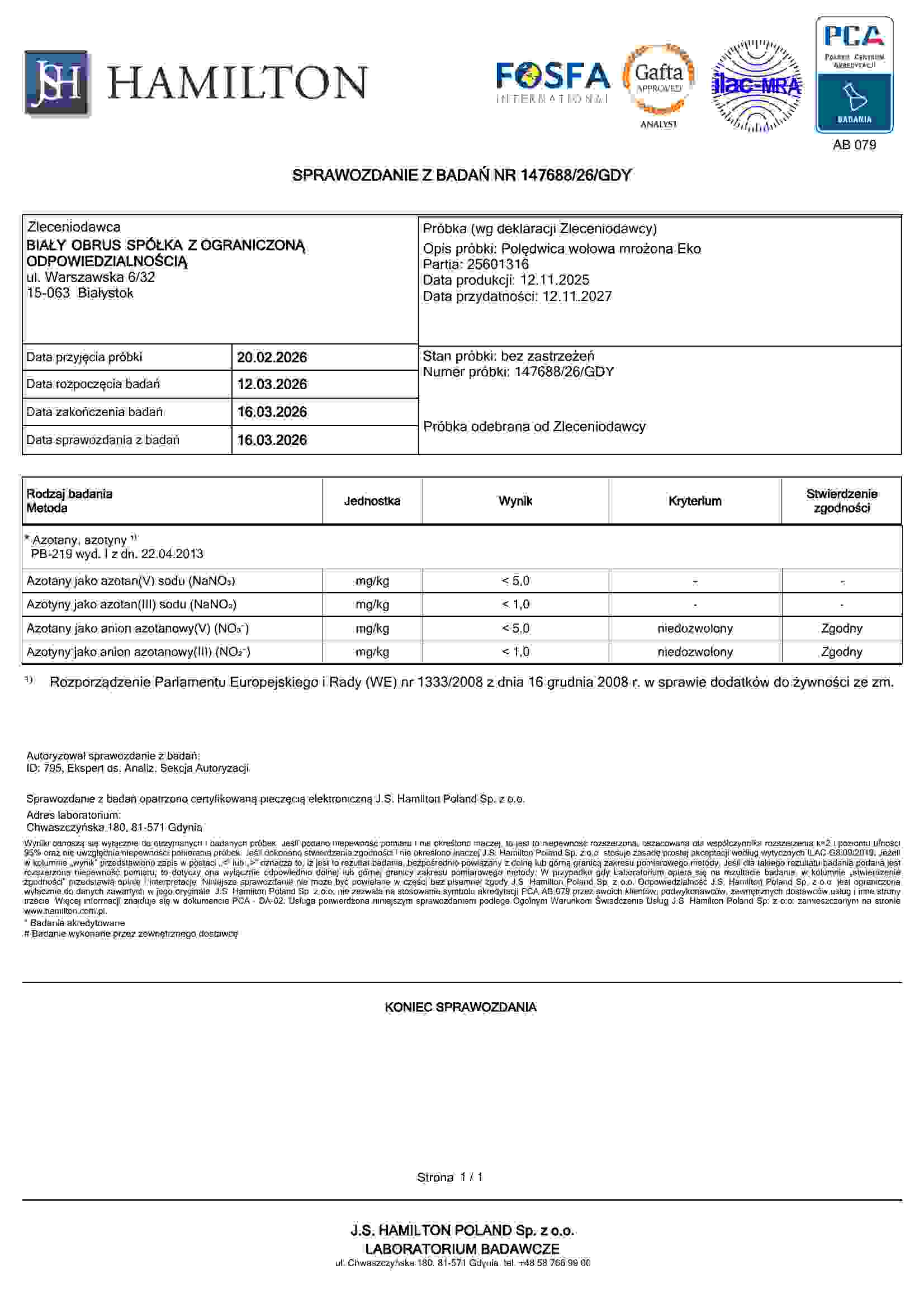 nie dodajemy azotynów do naszych wyrobów (są zbędne dzięki głebokiemu mrożeniu) ani do mięsa (bo byłoby to wbrew prawu!)